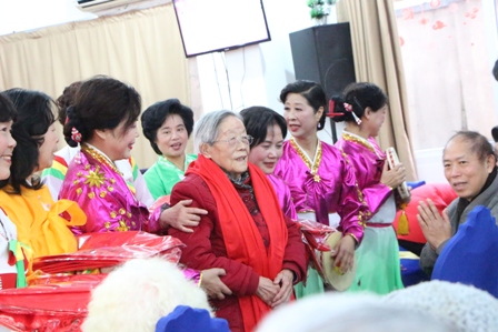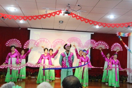 主持人上台致词介绍了虹馨舞蹈队,掌声想起来以后,第一个精彩的节目就开始了,朝鲜族舞蹈《手鼓舞》是我们比较少见的,今天我们爷爷奶奶可乐坏了,一开场就是如此精彩的舞蹈,气氛一下就嗨起来了呢!接下来的几首歌曲也是非常精彩的男声独唱《莫斯科郊外的晚上》京剧《打虎上山》表演者都是上了六十岁的大伯呢!当然此次活动也不是只有单独的舞蹈和唱歌还有乐器独奏《喜洋洋》与《粉红色的回忆》爷爷奶奶也是喜欢的不得了呢。接着舞蹈《高原红》也是跳的非常惊艳的。六十多岁的阿姨们穿着好看的演出服。个个神采奕奕的。接下来又是男声独唱《长鼓敲起来》《两地曲》朝鲜族舞蹈《延边人民热爱毛主席》都精彩不停,时间过得飞快活动接近尾声,我们听到了大合唱《相逢是首歌》看到所有演员一起表演《感恩的心》。真心感恩他们奉送的精彩节目。