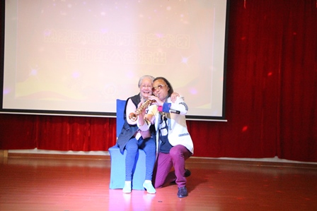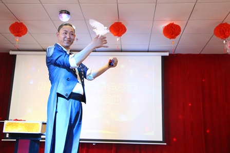 热身操结束后,柏阿姨就带来了越剧《红日绿树山花开》,一曲结束掌声不断,比掌声还大的呐喊声是“再来一首”,接着柏阿姨演唱了淮剧《河塘搬兵》选段,慷锵有力唱腔赢得阵阵掌声。没想到大家还是没有听够,“再来一首”的呼声更为响亮。柏阿姨又演唱了京剧《穷人的孩子早当家》选段。柏阿姨的演唱真的精彩无比,掌声一直未停。紧接着便是萨克斯演奏。一首欢快、耳熟能详的《小苹果》响动全场。柏阿姨在萨克斯的节奏下带动着全场的爷爷奶奶和员工们跳起了接龙,长长的接龙队合着音乐边跳边舞不断有老人加入队伍。随着《母亲》的伴奏响起,整个现场都暖暖的。演奏者一声“妈妈”喊到了奶奶们的心里。大家都感动的热泪盈眶。在这样温馨感人的氛围里我们沪剧表演者一袭红衣走上舞台。她是上海沪剧老艺术家王珊妹,她首先给爷爷奶奶们带来了《办喜事》,接着著名沪剧艺术表演家徐伯涛先生在王珊妹老师的邀请下走上舞台。他们对唱的《相思鸟》和《昨夜情》都赢得了热烈掌声。咦,一个扎着小辫,长得高大强壮的帅哥走上了舞台,他是要表演什么呢?只拿了一个话筒,音乐也没有,突然一声新生儿的哭声响起,一会又有火车声,一会又是刚出生的小狗叫声。哦!口技!这惟妙惟肖的表演真是绝了呢!大家开心的只有用热烈的掌声感谢他如此精彩的表演。一位白裙飘飘的美女走上舞台,她是小提琴手佳佳,她给爷爷奶奶带来了专业级的小提琴表演,《Gypsy Dance》与《康康》演奏完毕大家根本没有听够,在爷爷奶奶们的要求下,佳佳美女在没有伴奏的情况下又演奏了一首《梁祝》。欢快的时光过得飞快。接着是来自上海越剧院的越剧小生徐标新老师给大家带来了《送花楼会》和《听小生一一道来》,老人听得意犹未尽,报以热烈的掌声。一位男高音歌唱家带来歌曲《敢问路在何方》和《在那桃花盛开的地方》专业的歌喉,让爷爷奶奶们感受到歌声的魅力。魔术表演对于吉阳红敬老院的爷爷奶奶们来说看的可是不少呢,可是今天看到空手变出来的白鸽,突然嘴里吐出来的扑克牌。爷爷奶奶们还是在震惊中不断的报以掌声。最后这个节目对爷爷奶奶来说是个非常新鲜的呢!看到一个穿着戏服的帅哥跑上台来,随着音乐玩起了变脸。哦!这就是四川著名的表演《变脸》,今天总算看到了!