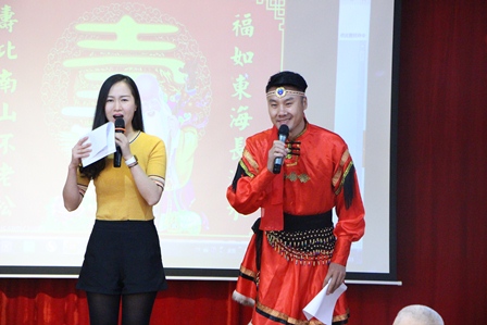 每一次的生日会总有社会各界爱心志愿者来给这个活动增加色彩,首先看到的就是主持人晓雨女士与一位穿着“红裙子”的帅哥走上舞台,他们是今天的主持人,晓雨女士是我们的老朋友啦!她甜美的主持风格总是给我们带来快乐。而这位帅哥是第一次来我们敬老院的志愿者,吉祥帅哥不仅能说会道舞蹈也是跳的相当棒呢!我们的老朋友何世杰先生,一首《小白杨》唱的满腔热血,一身军装也是非常养眼加上歌声嘹亮,我们听得意犹未尽呢!王亚宁老师是首次参加生日会,首先给大家带来《人间第一情》歌声动听,应大家要求再来一首《母亲》。两首歌都非常适合此时此景,希望王老师下次还来给大家送来如此好听的歌曲。接下来是市检察院合唱团优秀骨干陆老师走上舞台,一袭军装,帅气大方。给爷爷奶奶带来一首《夕阳红》歌声里洋溢着对爷爷奶奶的祝福,动听的歌声赢得满堂喝彩。听到一首特别有感情的歌《妹妹找哥泪花流》,演唱者是一位盲人,歌唱的非常棒。她说曾经得到过很多人的帮助,所以她也希望用自己的歌声给他人带来快乐。战友之音的骨干葛逸敏女士给大家带来一首《祖国万岁》歌声优美动听。刚好今天也是她本人生日,她用他的志愿活动让生日过的更加有意义。