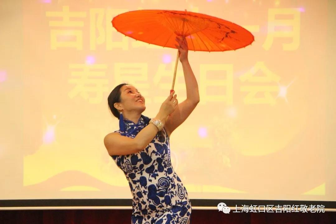 通过三位护理管家分享18位寿星爷爷奶奶的温馨小故事,让大家互相之间更加了解,让吉阳红这个温馨的大家庭更加有爱。紧接着狮子联会志愿者们陪爷爷奶奶点蜡烛,戴寿星帽,全场一起唱生日歌…….在祝福声中寿星爷爷奶奶们共同许下美好的心愿。狮子会东方阳光服务队已经连续8年为我院爷爷奶奶服务了,爱心满满,为他们的奉献精神点赞! 我们可爱的吉祥大帅哥一早特地从嵊泗列岛赶来参加爷爷奶奶的生日会,他风趣幽默的主持风格深受爷爷奶奶们的喜爱。首先是咱们的老朋友何世杰老师为爷爷奶奶带来歌曲《说句心里话》,包含热情的歌声,感动了现场数人。何老师也是多次来我院给爷爷奶奶们庆生,爱心满满!紧接着王仪晴小朋友,今年11岁,已经获得小提琴5级,英皇芭蕾舞4级。今天带来的小提琴《挥着翅膀的女孩》,爷爷奶奶们非常喜欢。接下来是大美女卢珊珊,08年参加央视《星光大道》年度总决赛助演嘉宾,全国百灵杯歌手大奖赛金奖,全国企业歌手大奖赛金奖,连续四届获吉林省青年歌手大奖赛 ,冠军原创专辑中《老夫老妻》《幸福的人》已收录在全国KTV点歌系统,词作者,原唱。原创《东方美人》被选为北京旗袍大赛主题曲。今天带来的《我的祖国》《拉着妈妈的手》,歌声非常动听,完全是听觉盛宴,把全场活动带到了高潮!歌声如夜莺般美妙的上海邓丽君之称的孙瑾美女一首《除了你》,爷爷奶奶听得如痴如醉,强烈要求再来一首!又一曲《春风吻上我的脸》饱含深情,唱到了爷爷奶奶的心坎儿里。邱铄巍小朋友分别获得中国舞十级,漫画七级及上海书协六级艺术水平等级证书。《彩云之南》在北舞全国青少年艺术节上获闪耀银星奖。今天带来的舞蹈作品《傣之韵》,跳的非常美丽,获得爷爷奶奶们满堂喝彩。再接着,由来自《爱上镜专业演出团》的舞蹈演员刘蓉老师表演。这是一支优秀的舞蹈团队,获得奖项无数,且在中国演艺艺术领域拥有举足轻重的地位。刘老师与舞蹈团队曾在各大电视选秀节目、剧场等参与了大中型演出数百场,获得了社会各界领导和大众的一致好评。一曲《江南梦》,把江南女子的柔美和动感十足的拉丁舞完美结合,赢得了阵阵喝彩!