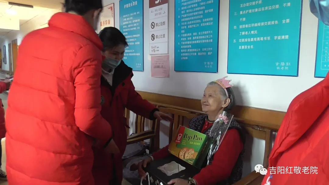 619室崔宝娥奶奶今年83岁,是一个很亲切的人,对待我们工作人员一直很包容和体贴,她也会经常和我们护理员聊天,关心我们的生活。子女也是特别孝顺。当我们为奶奶唱生日歌时,奶奶很激动,很感动地说“这是我在吉阳红的第1个生日,谢谢你们…….”。我们也将快乐的小视频分享给家属,一起为奶奶过生日。