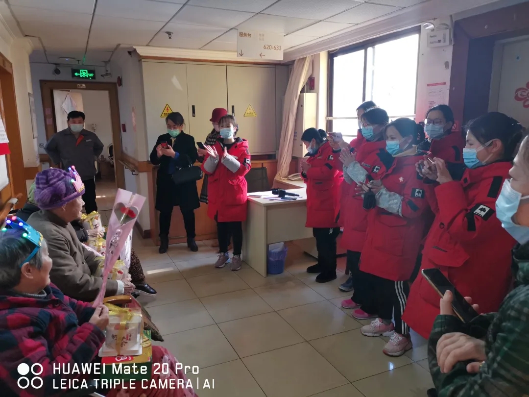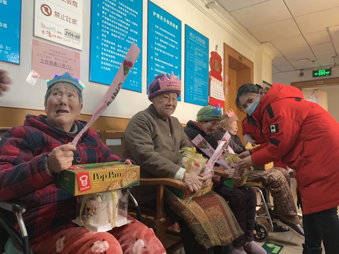 院领导与护理管家为寿星爷爷奶奶们戴寿星帽,送鲜花、送蛋糕、送礼物,唱生日歌,在祝福声中寿星爷爷奶奶们共同许下美好的心愿。大家与各楼面的寿星爷爷奶奶们一起快乐的合影。寿星爷爷奶奶们看到我们的身影非常开心,有位寿星老人激动地流着泪对院领导说:“她活了这么多年,第一次过集体生日,看到这么多人为她庆祝生日,感到很幸福”。还有一位寿星老人讲:“住在吉阳红,我们是幸福的,除了有工作人对我们无微不至的照护以外,还有那么多的爱心人士的关怀,让我们在寒冬里过了一个温暖的生日,尤其在这样一个特殊的时期......”。