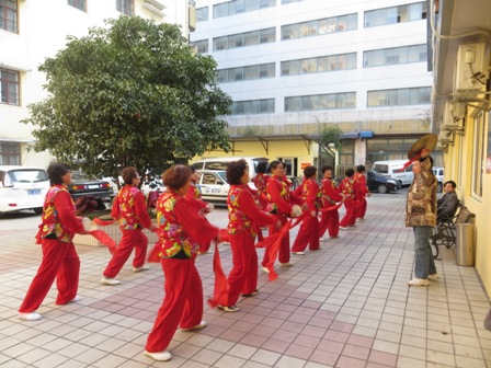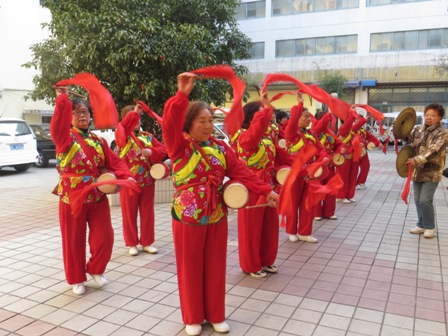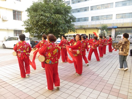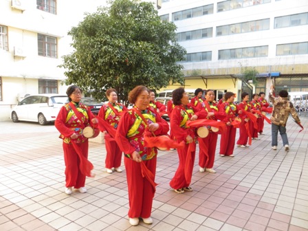 居委会张书记也给我们活动的开场带来了一段喜庆的腰鼓队表演,让春节的气氛一下弥散到整个敬老院。