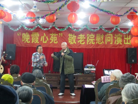 2013年1月28日下午2:30分由虹口区老龄办举办的“晚霞心苑”与“九九关爱”小剧场敬老院慰问演出在吉阳红敬老院的多功能厅正式开始,爷爷奶奶们早早的来到多功能厅做好准备等待着观看精彩的表演,此次活动有乐器大合唱、军队歌大合唱、戏剧、美声等等节目,看得爷爷奶奶是应接不暇,同时他们还给每位爷爷奶奶带来了充实的春节大礼包,爷爷奶奶们个个满载而归,笑容满面。