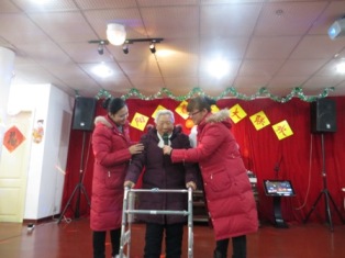2月5日下午活动准时开始,首先登台的是谈全寿爷爷,只见他头戴纸折的官帽,手提一个大喇叭,节目还没开始表演就已经乐坏了在场的所有观众,他今天给大家带来的节目是《吹喇叭过大年》,节目结束后,大家用手拍发出热烈的掌声。之后陈爱琴奶奶、赵文涛爷爷、蔡元俭爷爷、金中妹奶奶纷纷拿出了自己的杀手锏,展现了老人的风采。尤其最值得一提的是,由五楼奶奶和护理管家卞淼带来的手语《爱的奉献》,让你完全想象不到80多岁的老人能记下这么多手部动作,效果让人惊叹!之后员工也纷纷拿出了自己的绝活,尤其是吴美琴阿姨装扮的老人形象,更是引发叫好声阵阵,还有六楼护理员晋花团阿姨的曲剧,一板一眼的身姿更是让人惊叹。