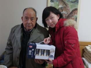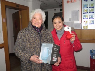 在活动中,还设置了抽奖环节,奖项设置有牛奶、黑芝麻糊礼盒、饼干等,抽到奖的爷爷奶奶自然是喜上眉梢,没有抽到的爷爷奶奶也因为大年初一将获得精美物资一份也很是欢喜。
