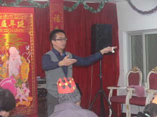 狮子会的志愿者们还给在座的每位爷爷奶奶带来了动听的歌唱表演和神奇的魔术表演,每次的魔术表演都看的爷爷奶奶们是惊奇万分,百思不得其解,这次我们的魔术大师也是给爷爷奶奶传授了一个魔术让我们知道其奥妙之处就是速度之快。