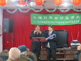 2013年4月18日下午2:30分上海口琴会来我院慰问演出,演出节目有口琴独奏、双人合奏、多人大合奏、戏曲、歌唱、太极拳等等精彩节目,感谢他们丰富的演出节目让爷爷奶奶又大饱眼福、耳福了。