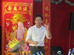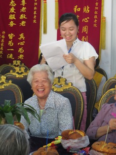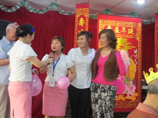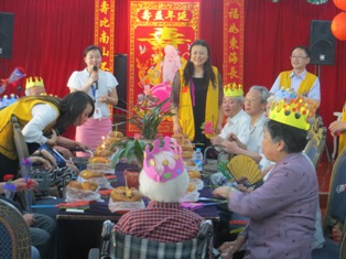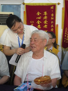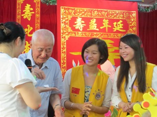 2013年6月16日下午2:30分庆祝6月份爷爷奶奶生日会同时也是个非常特别的日子--父亲节,狮子会的志愿者们如约而至的来到我院为我们的寿星爷爷奶奶们庆祝生日并送上父亲节的祝福,他们和爷爷奶奶一起点蜡烛、许愿、唱生日歌、吹灭蜡烛并送上他们最温暖的祝福以及问候。我们的魔术师郭先生也是持续坚持不断的给爷爷奶奶带来惊喜和神秘感,郭先生还带来了他的朋友为爷爷奶奶表演街舞,让爷爷奶奶大开眼界了一把;此次生日会我们的形象大使徐笑灵老师也带来精彩的节目为爷爷奶奶祝寿,还有爷爷奶奶、护理管家和志愿者们一同做很有趣的吹气球游戏,6月份我们的爷爷奶奶们又过了个开心、热闹、幸福、温馨的生日!非常感恩狮子会志愿者的这份爱心、关心!