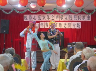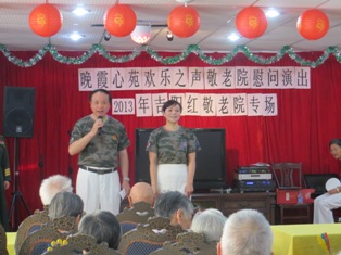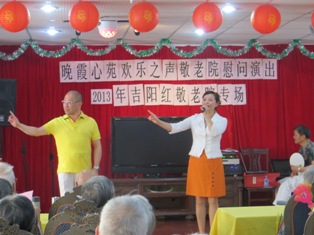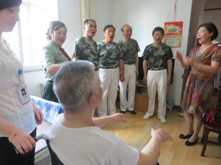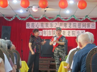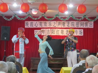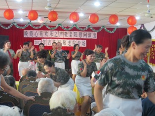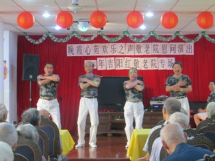 为了让那些卧床的爷爷奶奶也能参与到活动当中,他们还特意准备了几个节目到爷爷奶奶的房间为他们表演,爷爷奶奶感到非常的开心、感动。