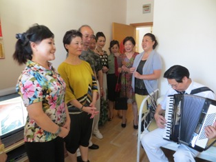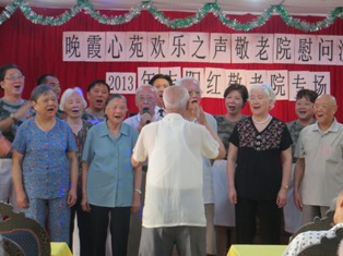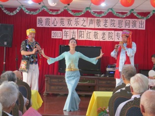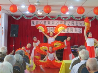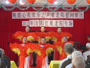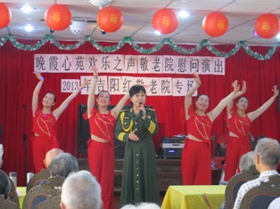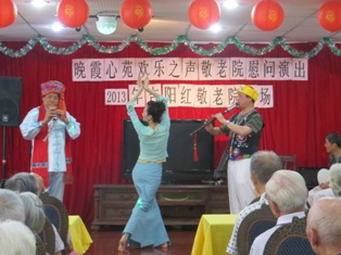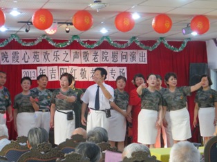 2013年7月18日下午热烈欢迎虹口区老龄办“晚霞心苑—欢乐之声”艺术团来我院慰问演出,这天下午他们早早的来到我院进行彩排、换装,为了能给爷爷奶奶带来更加优美的舞蹈和动听的歌声;2:30分活动由一首优美的歌曲加舞蹈开始,一下就将爷爷奶奶们给带入了只想认真观看节目的气氛中。