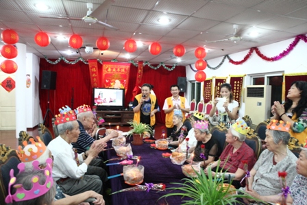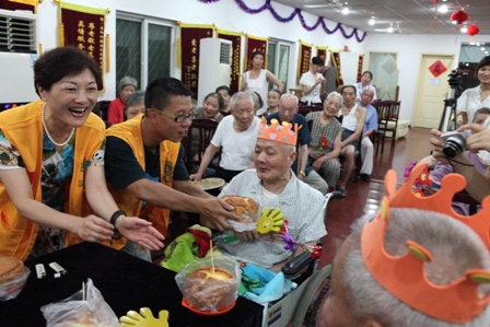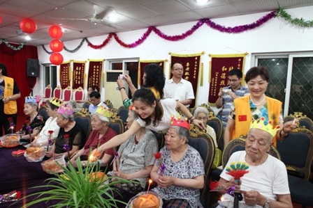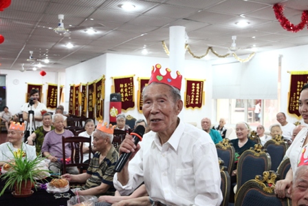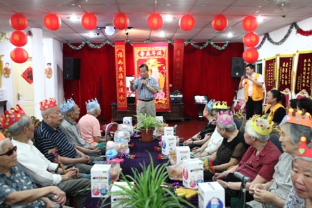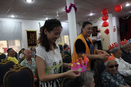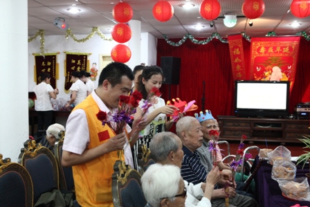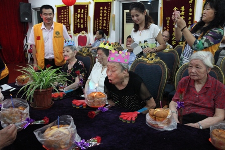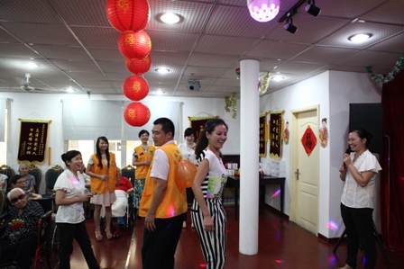 2013年8月25日下午2:30分热烈庆祝8月份爷爷奶奶寿星生日会,国际狮子联会的志愿者们如约而至的来到我院为我们的寿星爷爷奶奶们庆祝生日,他们和爷爷奶奶一起点蜡烛、许愿、唱生日歌、吹灭蜡烛并送上他们最温暖的祝福以及问候。他们还给爷爷奶奶们带来了精彩的节目,有歌曲、戏曲、两人对唱、游戏等等;还有志愿者与护理管家一同做有趣的夹气球游戏,同时我们的欢乐大使徐笑灵老师也来到了我们此次的生日会现场,他给爷爷奶奶带来了他最擅长的滑稽秀,逗的所有爷爷奶奶乐的合不上口;8月份我们的寿星爷爷奶奶人数很多,此次生日会上气氛非常的热闹,爷爷奶奶都洋溢出幸福、开心的笑容!