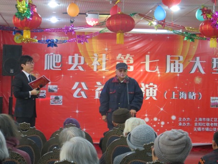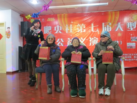 2014年1月12日下午两点半,在吉阳红敬老院举办了一场别开生面的演出。此次演出是由爬虫社与上海徐汇区文化局携手举办的文艺汇演。这次的活动中有很多与爷爷奶奶互动的环节,这样一来使得爷爷奶奶更加开心。他们积极投入活动中,积极参加互动赢得了奖品。在活动中爷爷奶奶也踊跃表演节目,陈爱琴奶奶,谈全寿爷爷,樊雄敏爷爷都上台用歌声感谢我们爬虫社给我们大家带来的精彩表演。非常感谢爬虫社到我院慰问演出,他们还给爷爷奶奶们赠送了礼物,一个精美的保温杯。感谢他们给爷爷奶奶送来了最真挚的祝福。美好的时光总是走的很快,一个半小时的演出转眼就到了,在爬虫社全体员工的留影中结束了今天的活动!