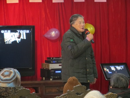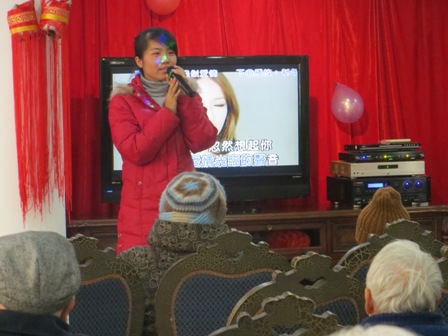 春节联欢会自然不能少了唱歌跳舞。刚开场就听到爷爷奶奶们的大合唱,唱的是我们的院歌《吉阳红之歌》还有一首非常有意义的歌曲《革命人永远是年青》。爷爷奶奶们唱完歌,我们的实习管家们自然要表现一下,她们三个集体跳了《不怕不怕》的舞蹈。紧接着陈爱琴奶奶上台唱了一首《天上人间》,中间参了三个抽奖环节,爷爷奶奶很多都得到了奖品,她们都很开心。最后以《新年好》结束了这次联欢会。