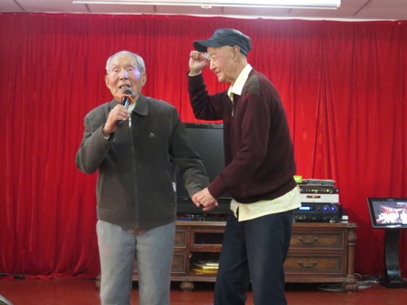 吉阳红敬老院也是一个卧虎藏龙的地方,看到大家如此精彩的节目,我们爷爷奶奶早已按耐不住激动地心情,踊跃上台用歌声表示感谢。陈爱情奶奶第一个上台唱了一首《天上人间》,大家不禁大声赞叹。我们96岁的蒋士杰爷爷在工作人员的搀扶下上台唱了一首《送别》,感情极深,掌声更是源源不断。还有91岁的樊雄敏爷爷、83岁的谈全寿爷爷、83岁的蔡元俭爷爷都用歌声表达了对银联合唱队与葵之花舞蹈队的感谢。