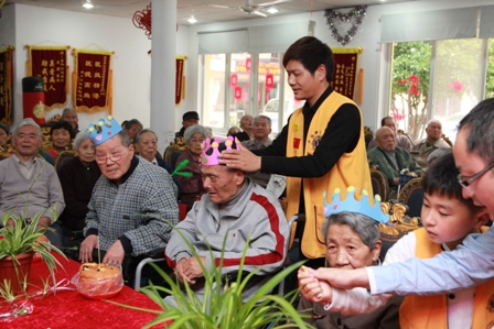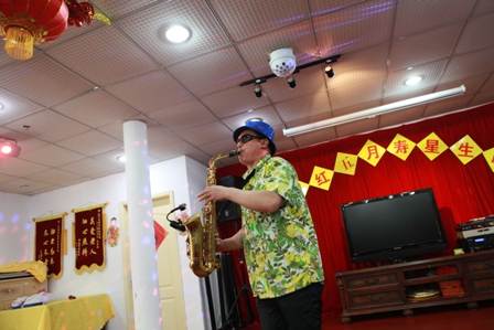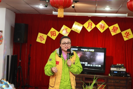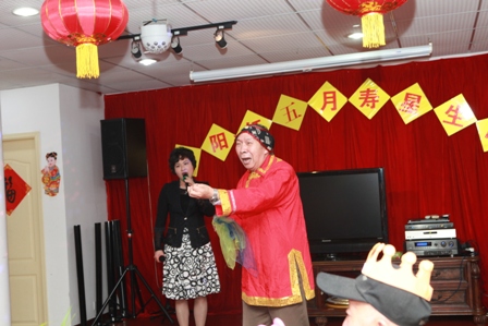 这一次生日会助兴节目非常精彩,有阿木林滑稽剧团的人员表演了说唱,民歌演唱,双簧,吹萨克斯等等精彩节目。还有狮子会成员中的小朋友给爷爷奶奶跳了一个自编的舞蹈。爷爷奶奶们用热烈的掌声回报了每一位表演者。