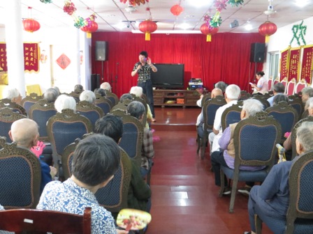 两点半活动正式开始,一开场就是阿木林的谈先生给爷爷奶奶带来了一曲说唱,迎来了一阵阵欢乐的掌声。在爷爷奶奶的要求下,谈先生又带了一个滑稽表演,逗乐所有爷爷奶奶。第二个节目就是魔术,表演了很多让爷爷奶奶目瞪口呆的节目。最后一个魔术更是让人心惊胆跳。但是爷爷奶奶还是非常配合这个魔术,让现场进入高潮。歌声也是一场节目里必不可少的,姜女士带了动听的歌声,爷爷奶奶听不够一再要求再来一首,姜女士连续给爷爷奶奶唱了三首歌。爷爷奶奶这才心满意足。神奇书法同样让我们见证了世界之大无奇不有,更体现了术业有专攻。最后一个滑稽表演让爷爷奶奶们也开怀大笑。