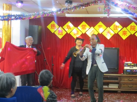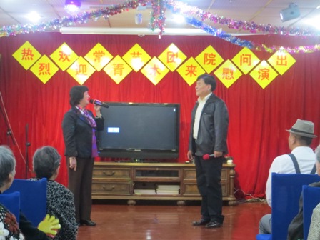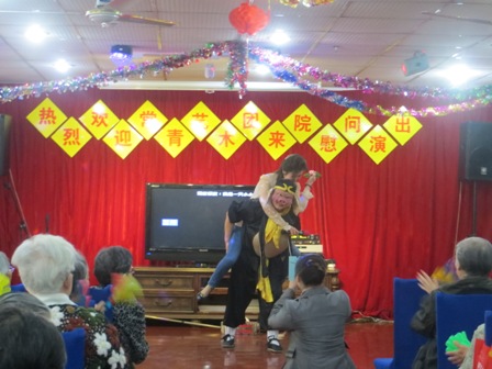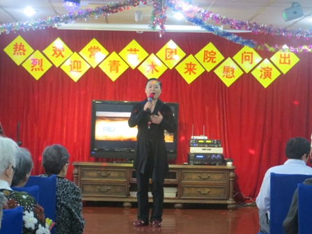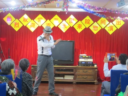 吉阳红敬老院的爷爷奶奶是幸福的。开场就听到要总给大家带来的一首《鸿雁》,这首歌是众多爷爷奶奶喜欢听得。接着常青艺术团的主持人上场,开场介绍就赢得了热烈掌声。首先上场的是参加过妈妈咪呀的实力唱将首先来了一首《母亲》唱的非常动情,有好些奶奶止不住掉眼泪。唱出了天下母亲的心声。为了缓解气氛带了一首《我是一只小小鸟》爷爷奶奶掌声不断。突然听到一声“嘿,猴哥”大家看到猪八戒背着他的九钉耙跑上台来。他憨憨的样子逗乐在场的所有人,接着上演了猪八戒背媳妇的桥段,瞬间我们的节目进入高潮。咦!一小伙蹦蹦跳跳跑上来,吹着气球玩着皮球,他是谁呢?哦,他是小丑的扮演者阿勇,他还走下台教奶奶玩皮球呢!在他的帮助下奶奶都不曾相信皮球可以在自己手中转动。常青艺术团就是懂得爷爷奶奶们的欢喜接下来就是沪剧呢!三首沪剧下来爷爷奶奶都拍手叫绝,掌声不断,高呼着再来一曲。魔术是我们精彩节目中不能少的,经主持人介绍后一位美女魔术师走上台来,在她的手中丝巾中变出了鸽子,被撕的粉碎的报纸又变得完好无损等等不可能发生的事情都在她手中变得完美精彩。她还教大家一个简单的魔术呢!接着来了一个萨克斯乐器表演,首先演奏的是《母亲》表演者请上我们院里的郭英英奶奶表演了一段感动所有人的母慈子孝。愿天下子女都可以尽孝,所有老者都能快乐健康的安享晚年。一曲《母亲》结束又来了一首欢快的《斗牛士舞曲》,表演者拉上在场的家属和老人一起在台上边跳边唱。非常精彩。