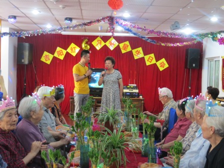 主持人开场后一一介绍了每一位寿星,志愿者们围坐在寿星爷爷奶奶身边,随着生日歌的音乐响起,志愿者们帮寿星点上了生日蜡烛,戴上了寿星帽,送上了生日礼物。大家一起唱了生日歌。现场温馨无比。金延怡爱心志愿者还给102的李凤秀奶奶送上了一束美丽的鲜花呢。