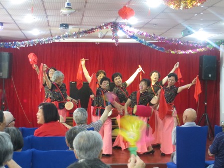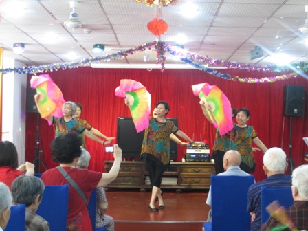 演出的开始是一段欢快的腰鼓表演。演员们挥动着手中的拍子,一下下地击打着系在腰间的小鼓上,清脆整齐的鼓声随之响起。爷爷奶奶们纷纷摇动起手拍。顿时,鼓声,手拍声共同启奏,整个会场气氛都跳跃了起来。腰鼓表演结束后,紧接着就是唯美温柔的扇子舞表演。多彩的扇子随着演员的动作一张一合,节奏感十足,不停变换的队形给整个扇子舞增添了不少的色彩,舞蹈结束后,爷爷奶奶都说节目很精彩。一场精彩的演出怎么能少了好听的歌曲呢。沪剧新白娘子传奇的选段就是爷爷奶奶的最爱,动情的表演让这个会场都安静了下来,大家仿佛都沉醉在了这个悲情的故事中了,一曲毕,爷爷奶奶都说没有听够,要再来一曲。演出慢慢进入高潮,这个时候,我院的住养老人谈爷爷上台给大家献上了一首《祝你平安》,还带领着爷爷奶奶唱起来了我们的院歌,爷爷奶奶整齐的歌声中也表达了我院对“逸仙一村一居委”演员们的感谢。