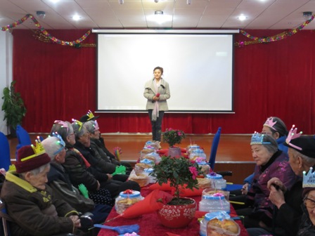 大红袄子主持人宣布二月寿星生日会正式开始,首先由护理管家介绍我们的二十二位寿星,紧接着就是我们二月寿星高慧娟奶奶和蒋曼华奶奶作为本次生日会代表发言。高慧娟奶奶在此次发言中给了吉阳红很高的评价与赞美,感谢护理员无微不至的照顾和院领导的关怀。吉阳红也会再接再厉,让爷爷奶奶们过得更舒心,家属更放心。最美的陪伴就是有家人朋友的陪伴,今天我们还邀请了寿星家属与老人共度一个美好的下午。98岁的徐玉英奶奶的女儿作为本次的寿星家属代表发言,希望在奶奶100岁的时候还能够陪伴奶奶一起度过。点蜡烛、带寿星帽、唱生日歌、送生日礼物是每次生日会必不可缺的。圣贝牙科医院给一二月寿星每人送了一套保暖内衣作为生日礼物。