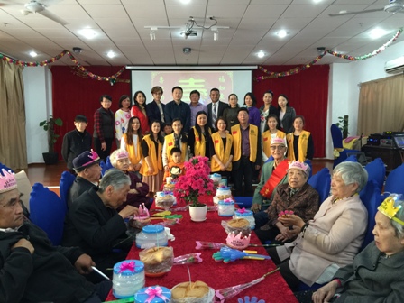 随着欢快的生日歌响起,我们也进入了今天最重要的第二个环节:狮子会志愿者和老人家属为本月寿星爷爷奶奶戴生日帽、点生日蜡烛,唱生日歌,送祝福,送礼物。我们的老朋友狮子会志愿者代表及致公党上海虹口区委员会第五支部王立中先生等爱心人士也分别上台给爷爷奶奶们送祝福,因为有他们无私地爱心奉献,爷爷奶奶们也才多了份期盼与快乐,吉阳红的爷爷奶奶们把他们的付出更是看在眼里记在心。