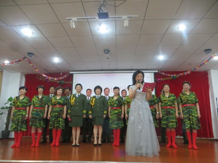 优雅端庄的女主持人在致辞结束后,音乐会就正式开始了!刚一开场,整齐的军装、欢快的歌曲,全体演员带来的的小合唱《英雄赞歌》瞬间就把现场的爷爷奶奶们带到音乐盛会中去了。一首首耳目能熟的红色歌曲《北京颂歌》、《感恩的心》、《草原夜色美》、《船工号子》、《我为祖国献石油》、《雕花的马鞍》、《饮酒歌》、《老伴》、《回娘家 》、《映山红》《女兵电话》、《雁南飞》《女兵电话》、《雁南飞》、《少林少林》、《喀秋莎》,让在座的爷爷奶奶也禁不住跟着一起哼唱,而歌曲《夜上海》则伴着优美的双人舞蹈,让爷爷奶奶咋舌的还有口哨演奏 《弹起我心爱的土琵琶》。歌曲一首接着一首的演唱,爷爷奶奶们在舞台下跟着音乐节奏一直拍着手拍,每个人的脸上都洋溢着幸福的微笑,更是听得不亦说乎。在现场所有演员及老人们美好的期许下,随着歌曲《共筑中国梦》的欢唱声,本次音乐会也渐渐落下了帷幕。
